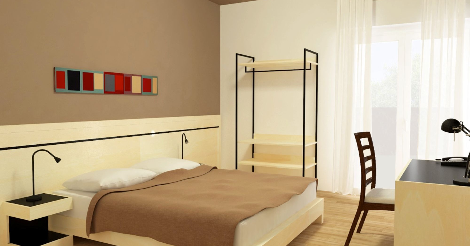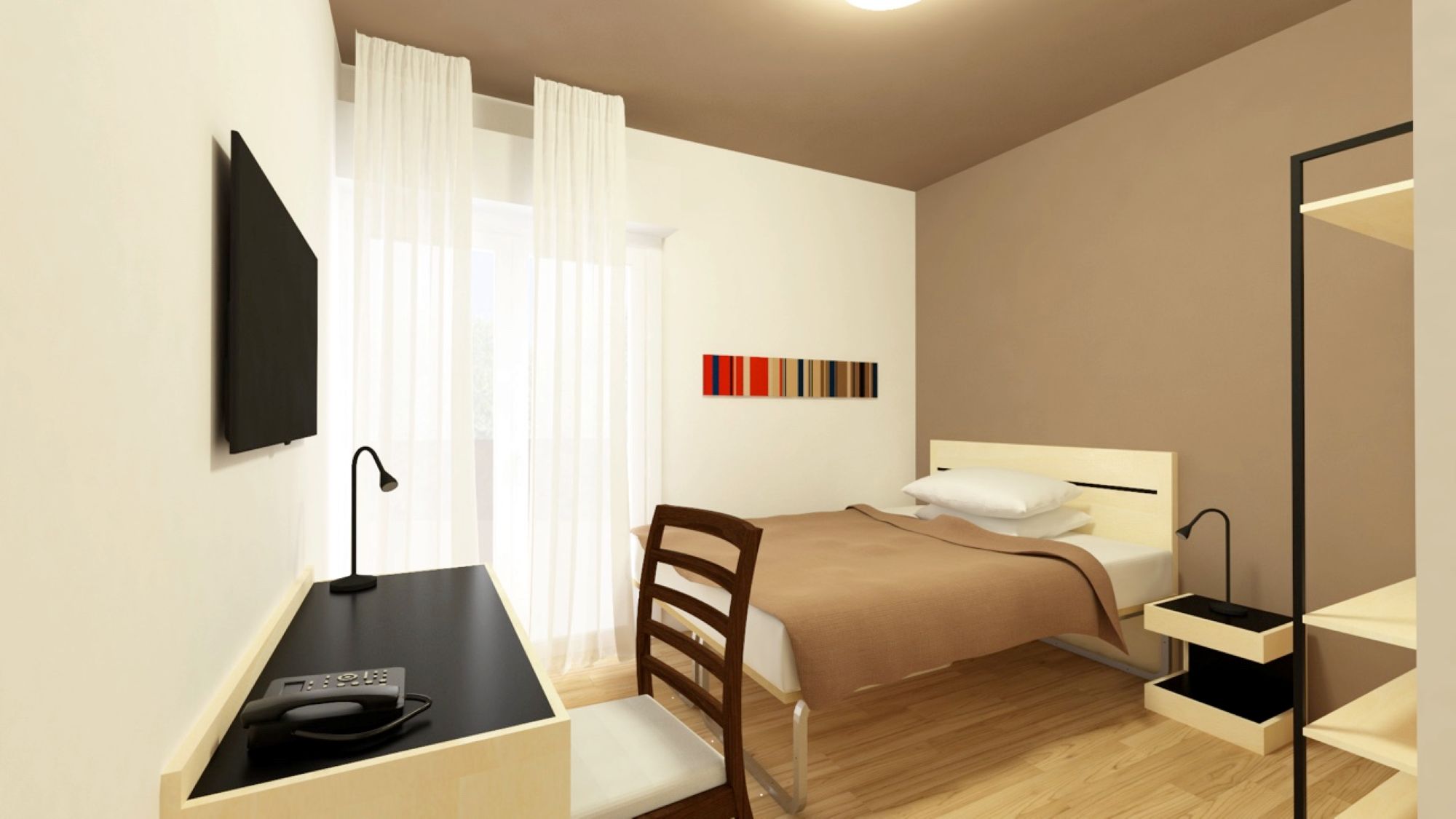 Camera dotata di arredo moderno e funzionale, bagno con doccia e balcone. Un ambiente caratterizzato dall’essenzialità con tutti i comfort.